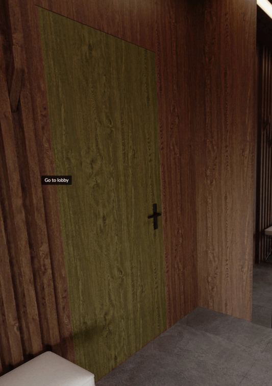 Лучше всего продемонстрировать работу оверлеев на примере, который вы можете повторить в собственном туре. Допустим, вы хотите соединить тур по интерьеру квартиры с туром по лобби, чтобы показать заказчику. Начнем с размещения интерактивного объекта “Полигон” на входной двери интерьера:
