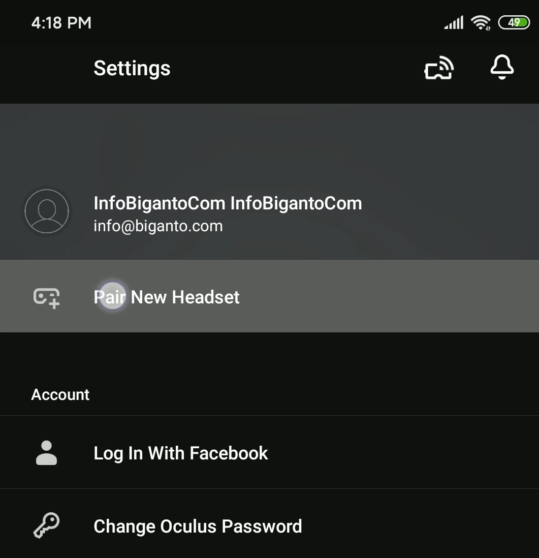 - Установите приложение Oculus на мобильное устройство и создайте аккаунт для получения доступа в Oculus store
