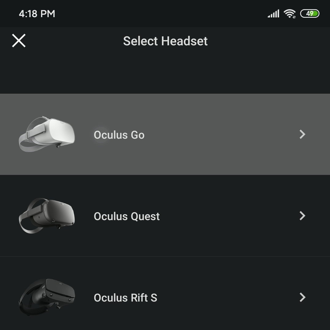 - Выберите Oculus Go из списка и следуйте инструкциям приложения