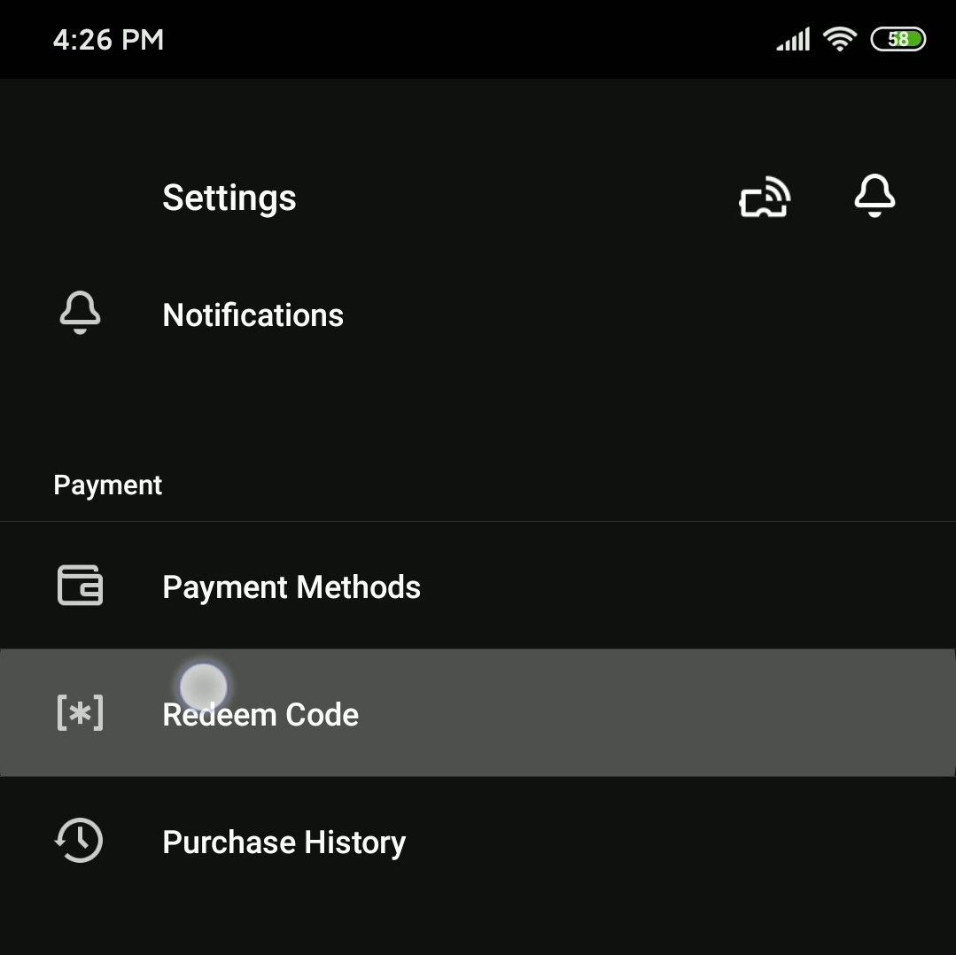 - Пролистайте страницу ниже и выберите “Redeem Code”