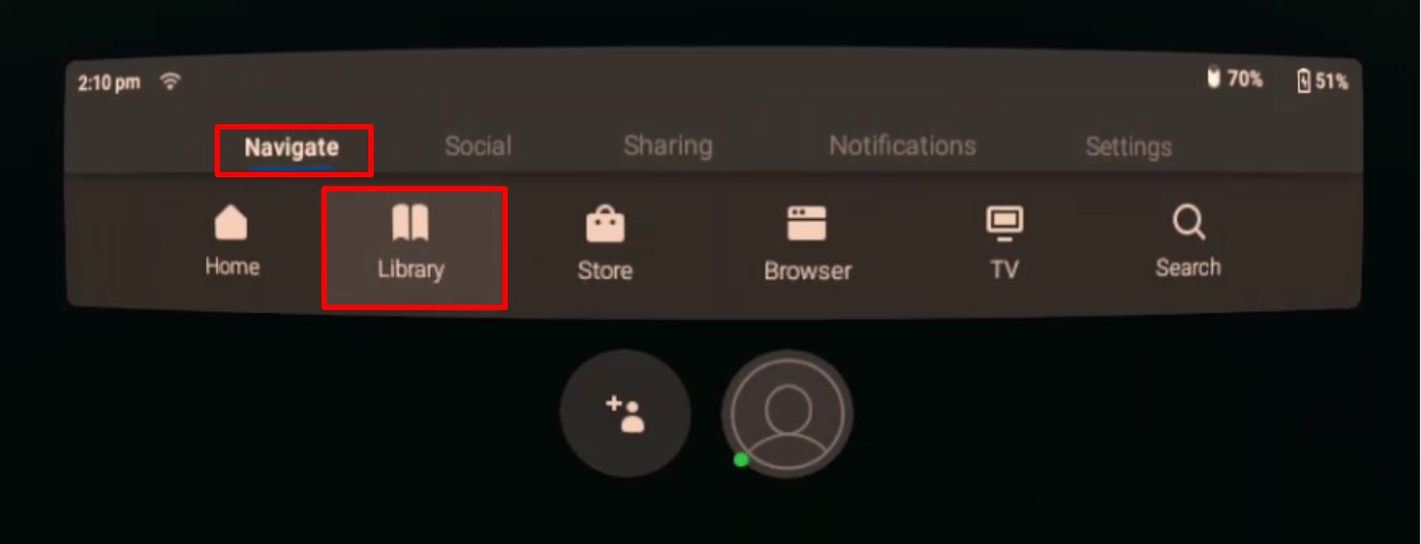 - Выберите с помощью контроллера пункт “Navigate” в меню, выберите “Library” чтобы открыть список доступных приложений