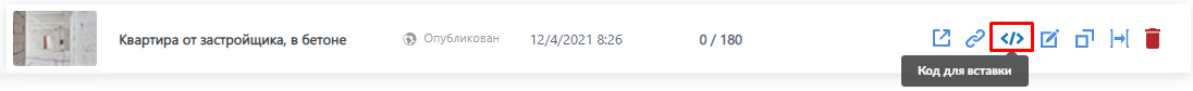 Чтобы сгенерировать iFrame код, наведите курсор мыши на тур в списке и нажмите “Получить встраиваемый код”.